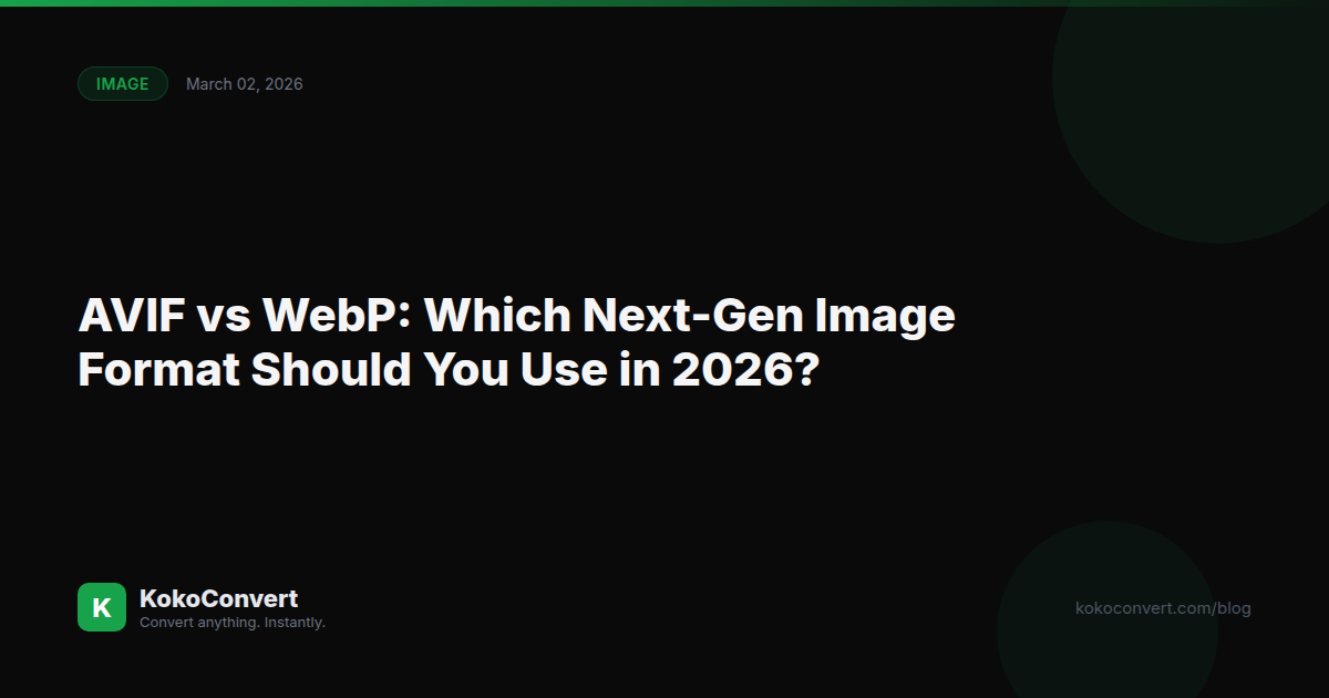 If you're managing images manually, tools like KokoConvert's image compressor let you generate multiple formats in one go. Upload your source image, download both AVIF and WebP versions, and you're set.